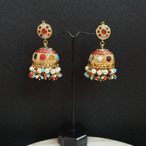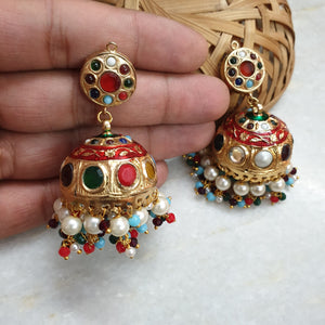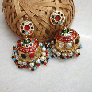 An elegant navratana stone Jadau earrings with the most stunning festoon. The perfect accessory for your occasion. This earrings are handcrafted with love