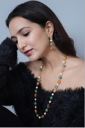 An elegant Stone beads dainty necklace and earrings with the most stunning festoon. The perfect accessory for your occasion. This necklace is handcrafted with love