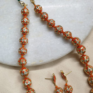 An elegant designer meenakari necklace with the most stunning festoon. The perfect accessory for your occasion. This necklace is handcrafted with love