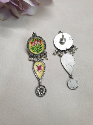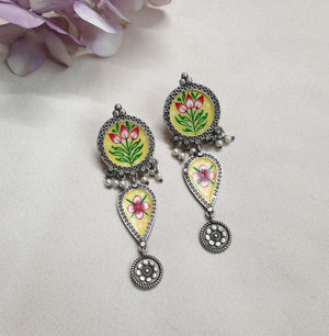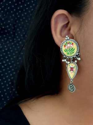 An elegant Oxidised silver Yellow handpainted earrings with the most stunning festoon. The perfect accessory for your occasion. This earrings are handcrafted with love