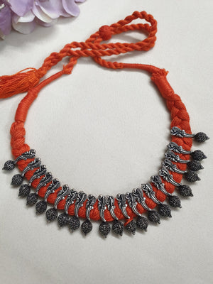 An elegant oxidised silver thread necklace with the most stunning festoon. The perfect accessory for your occasion. This necklace is handcrafted with love