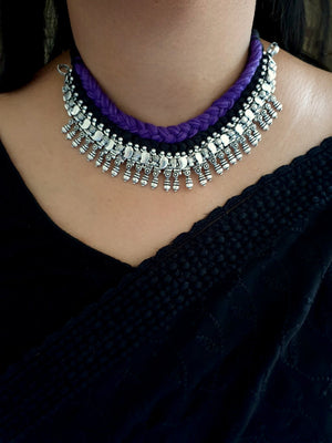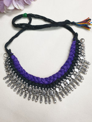 Oxidised Silver Purple Black Thread Necklace