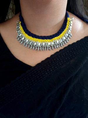 An elegant oxidised silver thread necklace with the most stunning festoon. The perfect accessory for your occasion. This necklace is handcrafted with love