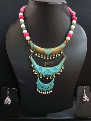 Oxidized Meenakari Work Necklace With Jhumki Earrings