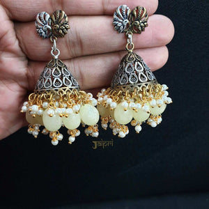 Oxidized Peacock Design & Yellow Stone Stud Jhumki