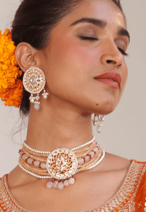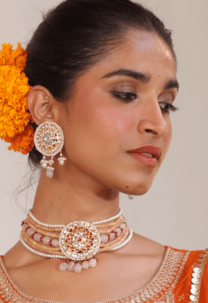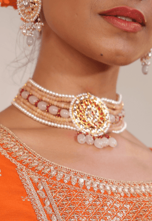 Peach Kundan Choker Necklace Set
