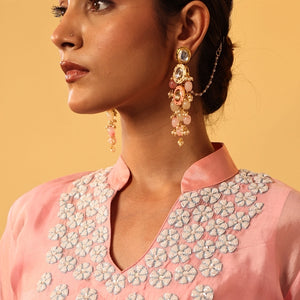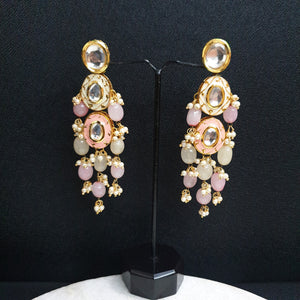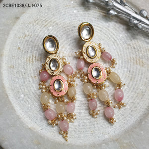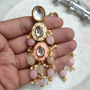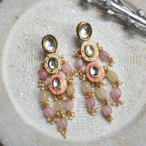 Peach Kundan Meenakari Beaded Earrings