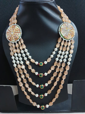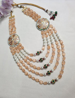Peach Kundan Meenakari Brooch Long Necklace