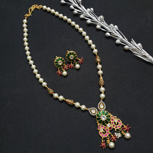 An elegant Gold Tone Temple Pendant Set With Earrings with the most stunning festoon. The perfect accessory for your occasion. This necklace is handcrafted with love