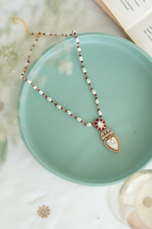 Pearl and Ruby Beaded Kundan Pendant Necklace