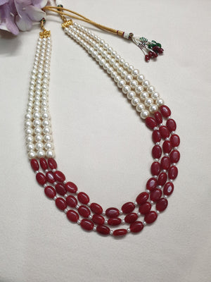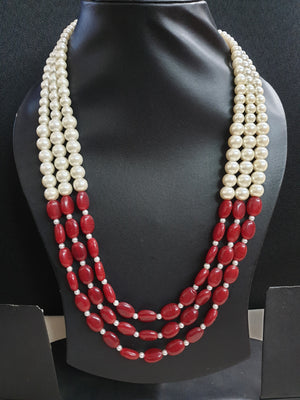 Pearl And Ruby Stone Beaded Groom Necklace