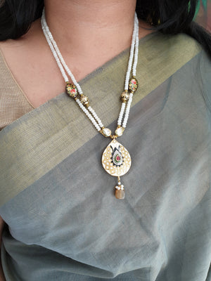 Tear-Drop Fusion Meenakari Pendant With Earrings