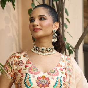 Styling: These are the perfect accessories to accentuate the elegance of your traditional outfit, furthermore, adding a perfect pop of color and edginess. The beautiful elements of the necklace set go well with the saree or any western dress. A statement necklace set is enough to turn the entire outfit look amazing. It looks better with a solid color outfit or pastel outfit.