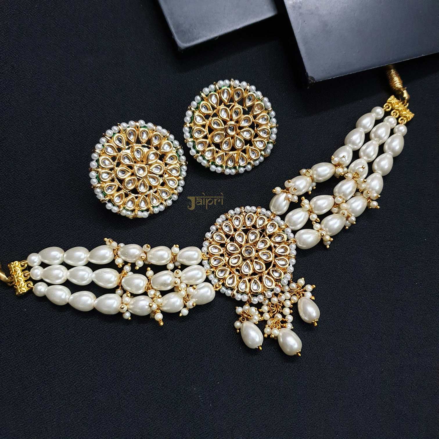 Pearl Kundan Choker Set With Earrings