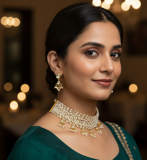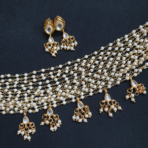 An elegant multilayered pearl choker necklace with earrings with the most stunning festoon. The perfect accessory for your occasion. This necklace is handcrafted with love