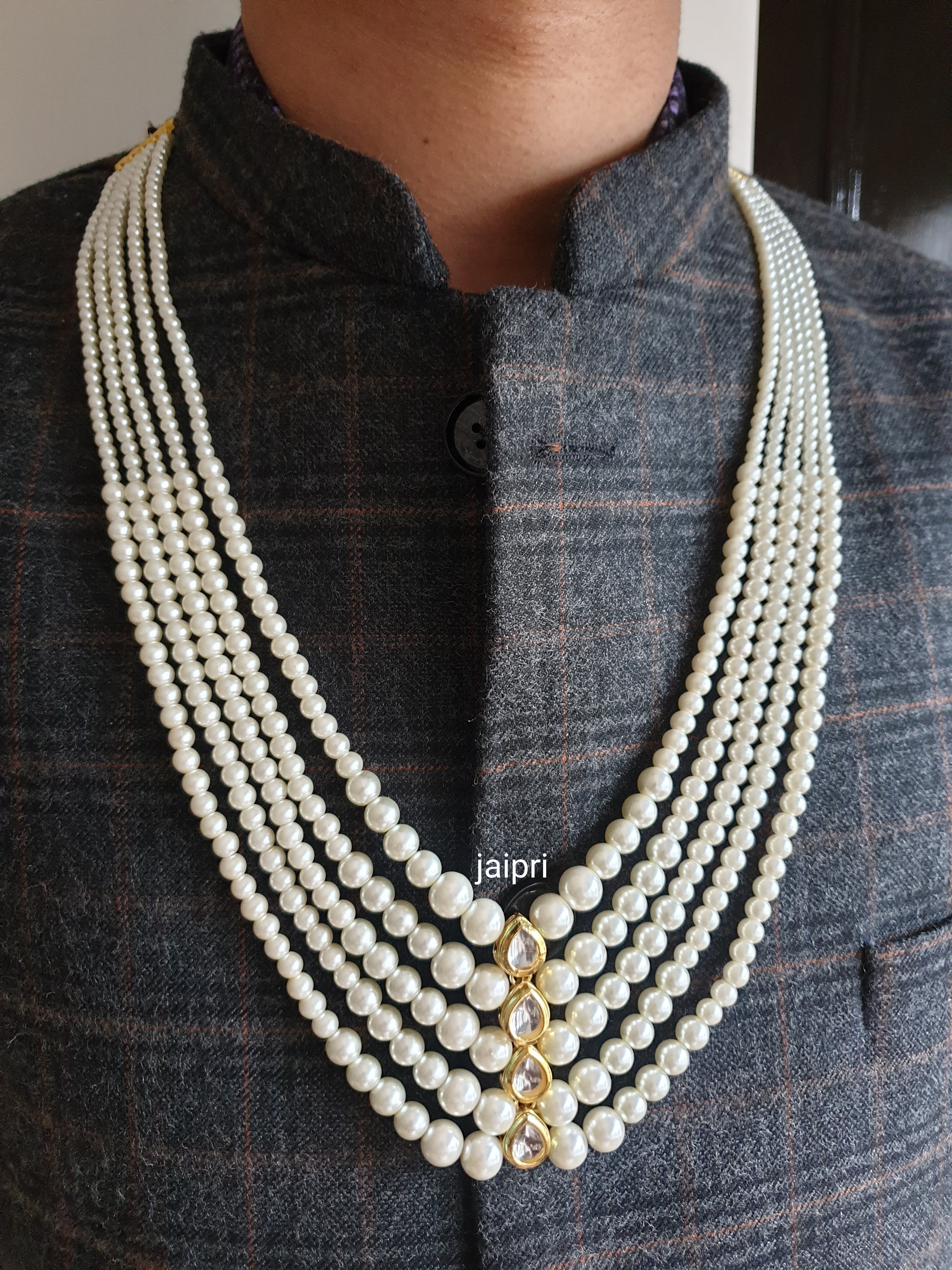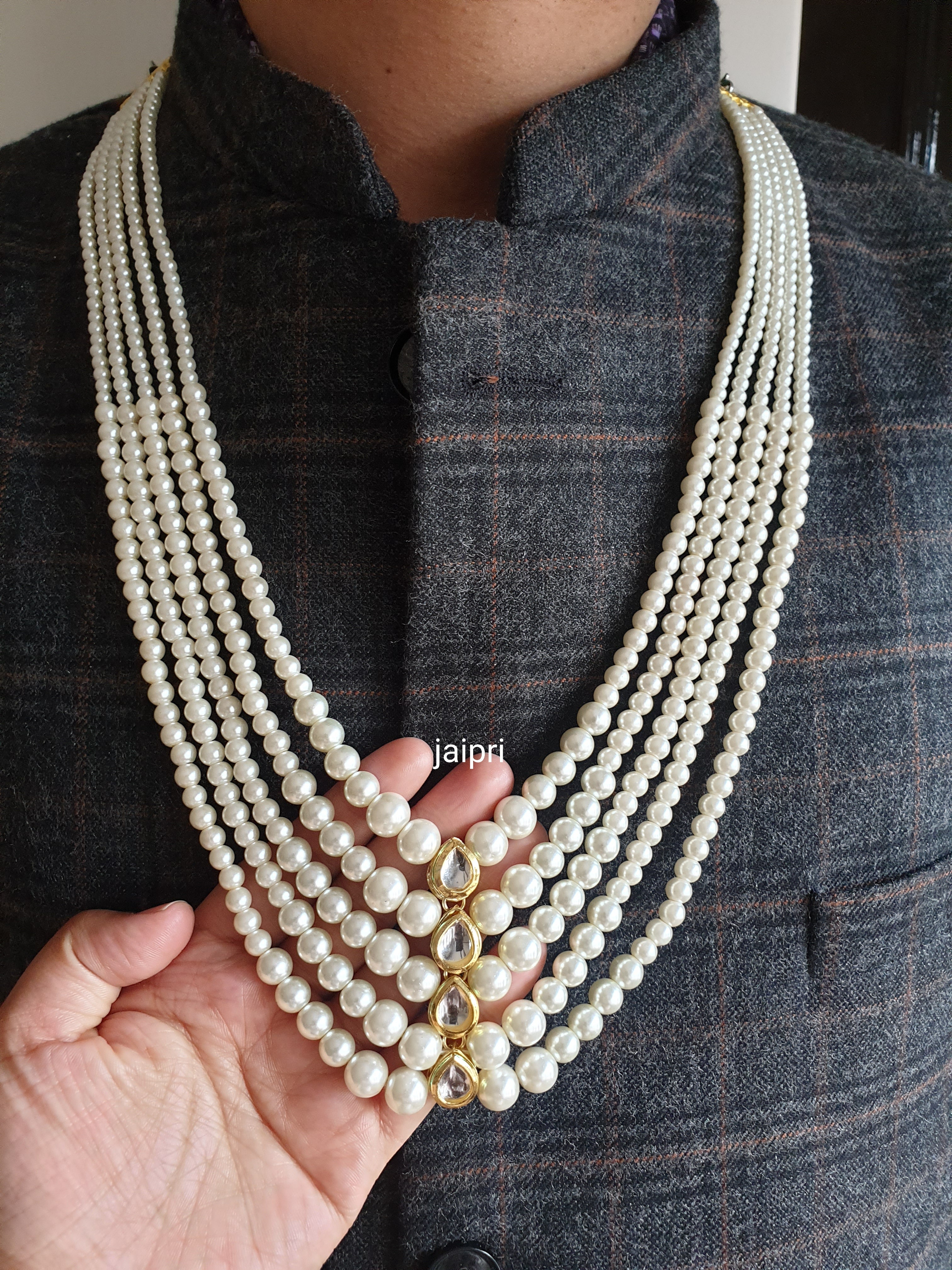 Pearl Layered Kundan Groom Jewellery For Wedding