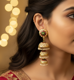 An elegant pearl stone jadau earrings with the most stunning festoon. The perfect accessory for your occasion. This earrings is handcrafted with love