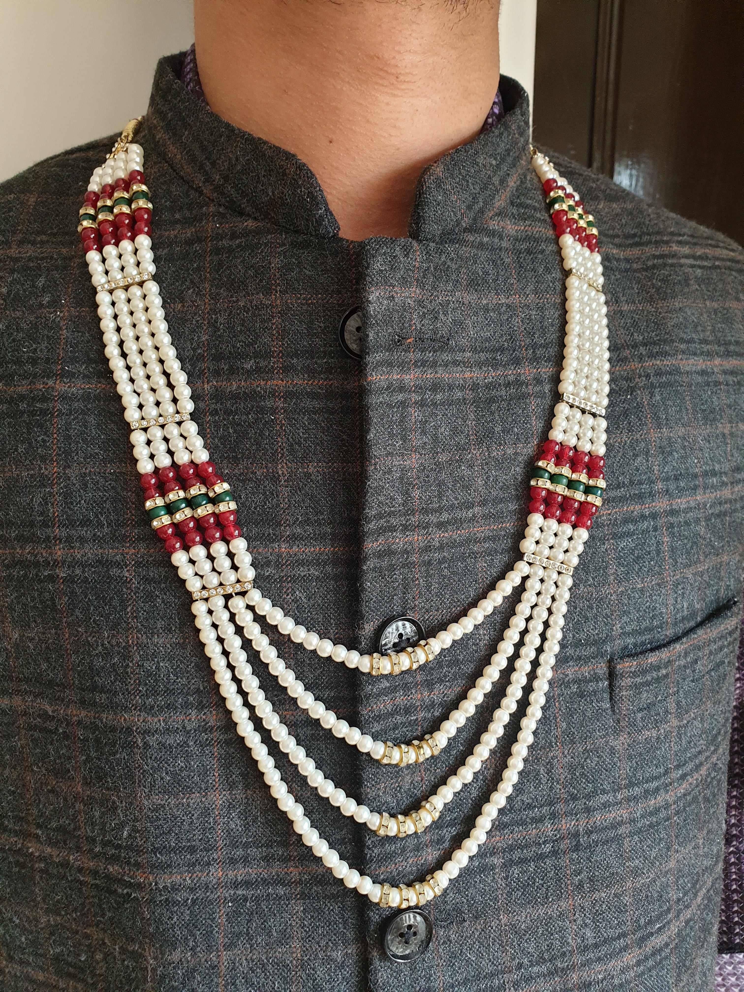 Styling: These are the perfect accessories to accentuate the elegance of your traditional outfit, furthermore, adding a perfect pop of color and edginess. The beautiful elements of the necklace go well with the sherwani or narrow jacket. A statement groom necklace is enough to turn the entire outfit look amazing. It looks better with a solid color outfit or pastel outfit.