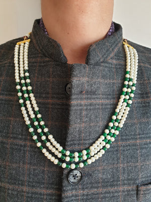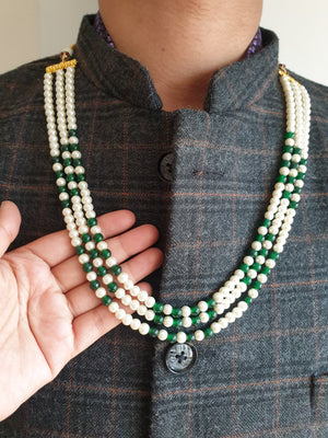 Pearl With Green Stone Groom Necklace For Indian Wedding