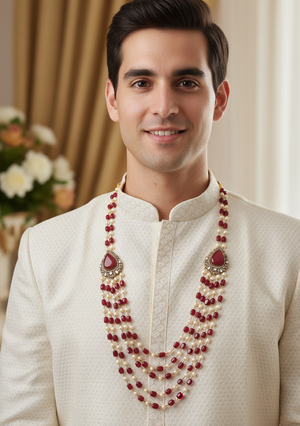 Styling: These are the perfect accessories to accentuate the elegance of your traditional outfit, adding a perfect pop of color and edginess. The beautiful elements of the necklace go well with the sherwani or narrow jacket. A statement groom necklace is enough to make the entire outfit look amazing. It looks better with a solid color outfit or pastel outfit.