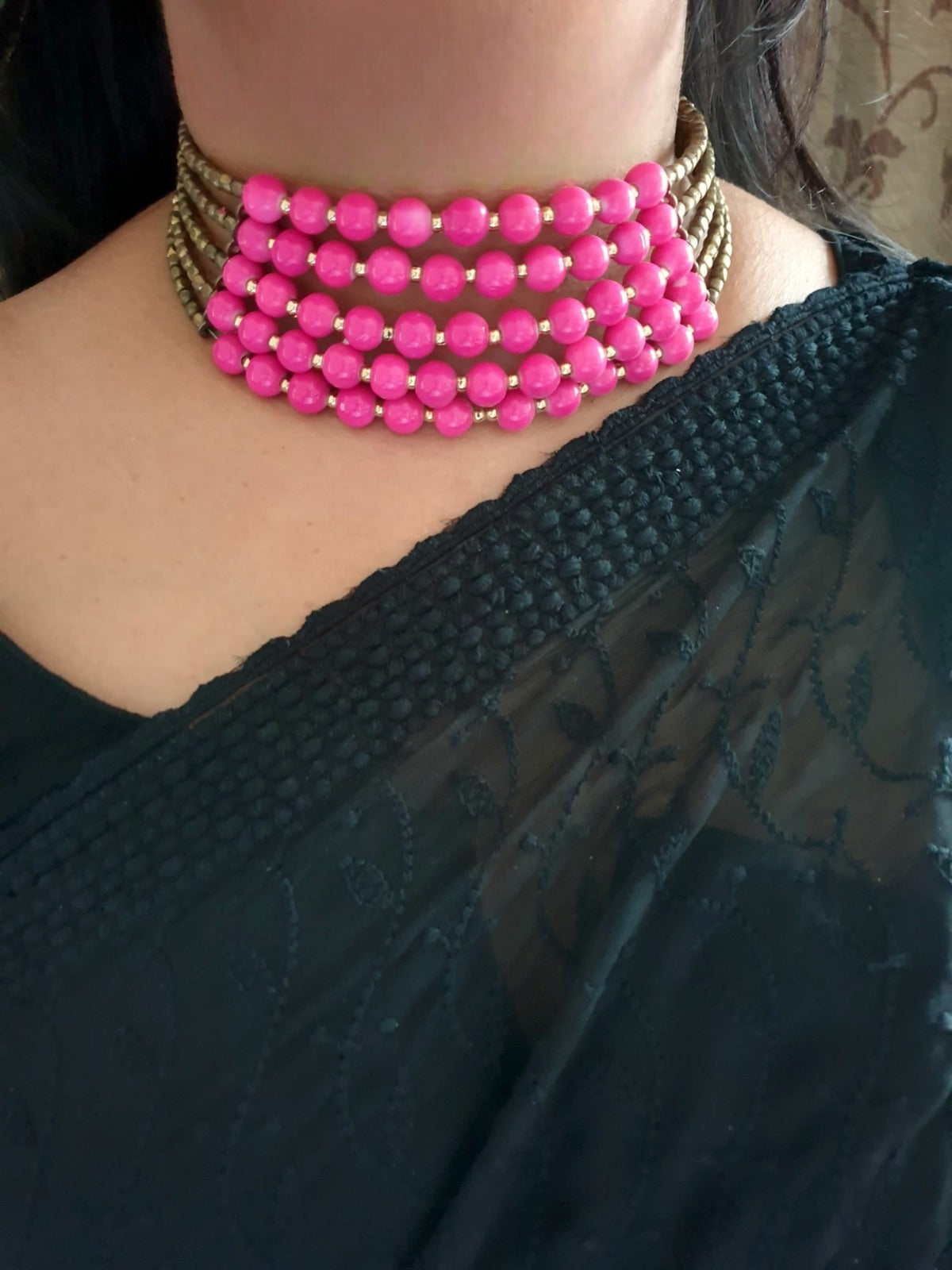 An elegant pink beaded adjustable choker necklace with the most stunning festoon. The perfect accessory for your occasion. This necklace is handcrafted with love