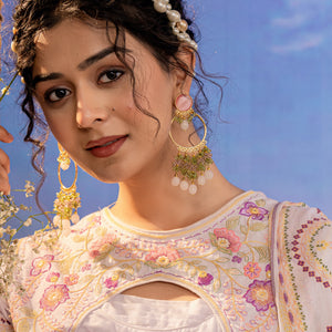 Styling: These are the perfect accessories to accentuate the elegance of your traditional outfit, furthermore, adding a perfect pop of color and edginess. The beautiful elements of the earrings go well with the saree or any Western dress. A statement necklace is enough to make the entire outfit look amazing. It looks better with a solid color outfit or pastel outfit.