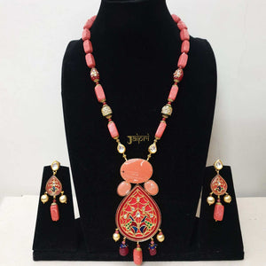 Pink Beads Stone & Meenakari Fusion Pendant With Earrings