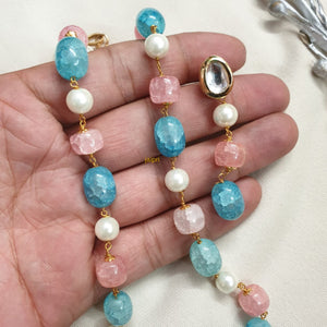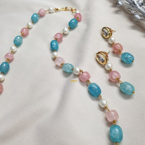 An elegant Stone beads dainty necklace and earrings with the most stunning festoon. The perfect accessory for your occasion. This necklace is handcrafted with love