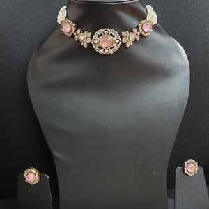 Pink Color Doublet Stone Kundan Choker Necklace With Studs