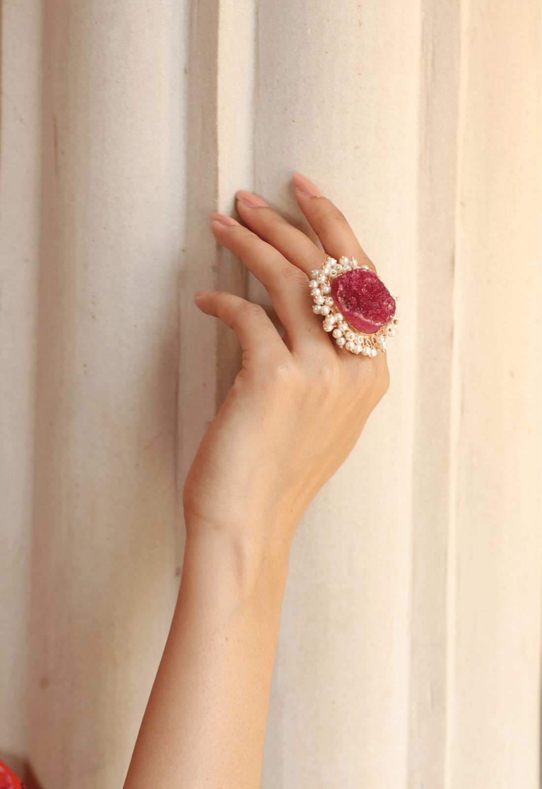 Make a luxurious statement with this designer stone ring. Crafted from the finest materials, this piece offers a touch of sophistication with its exquisite stone and intricate hand-engraved detailing. Discover true elegance with this timeless style.