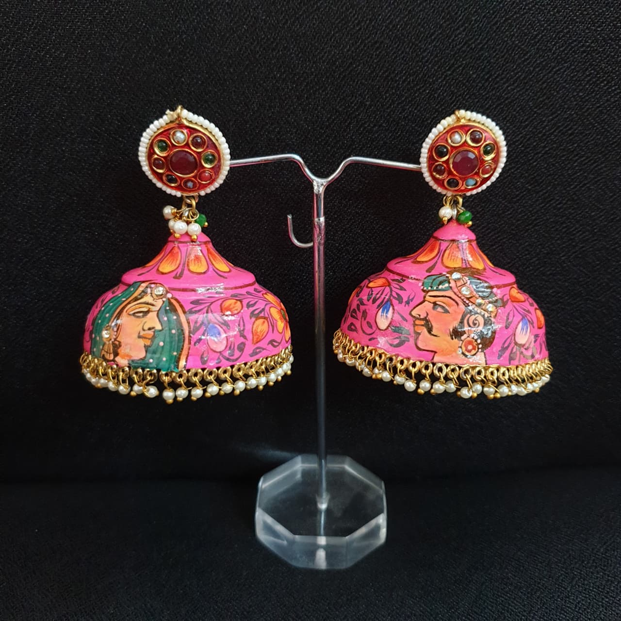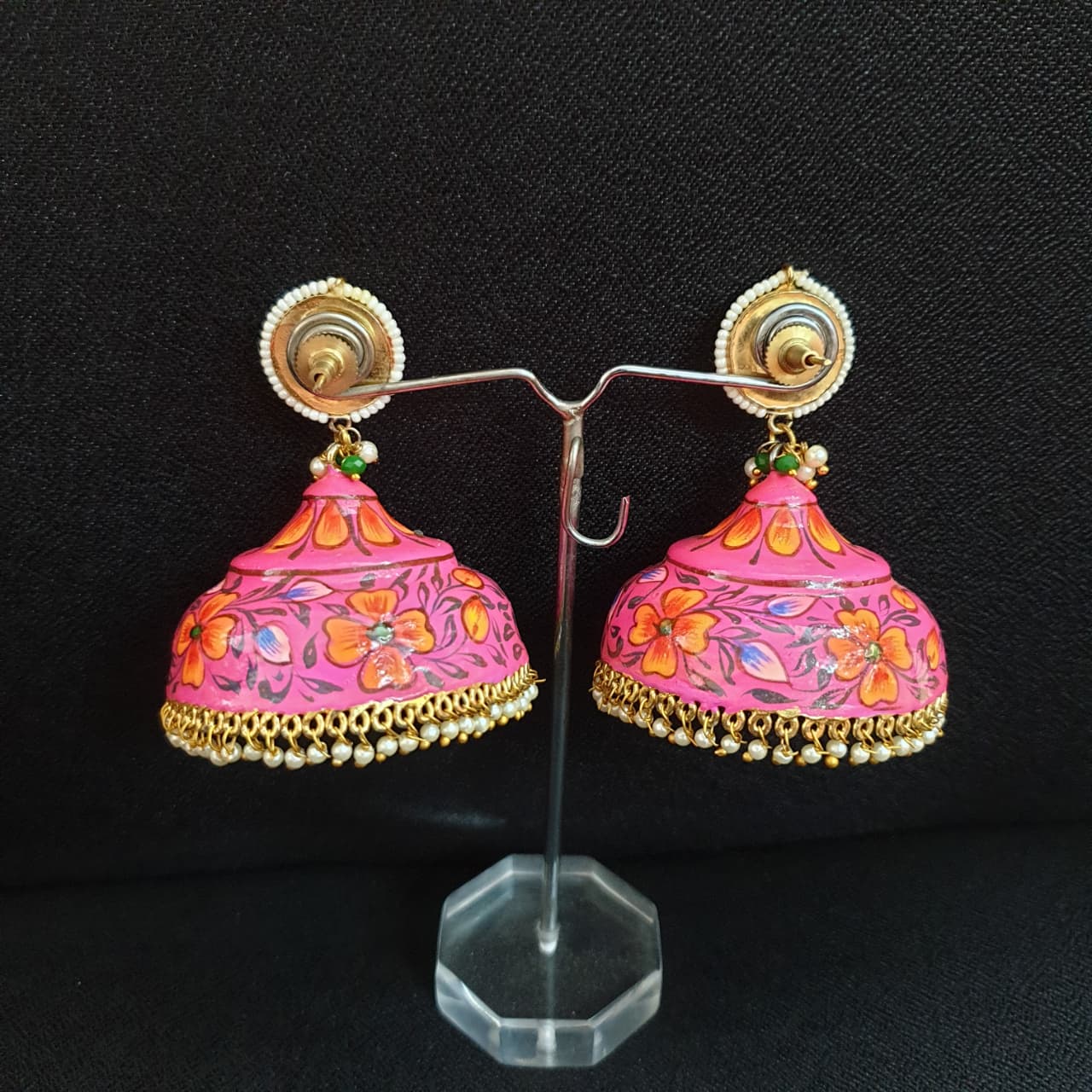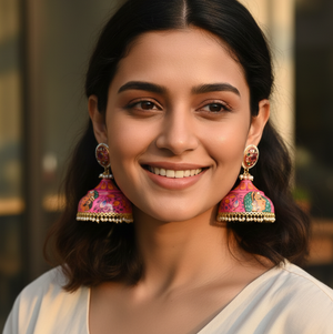 Pink Hand Painted Lightweight Jhumka Earrings