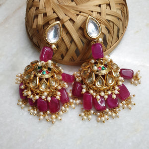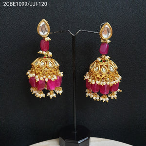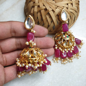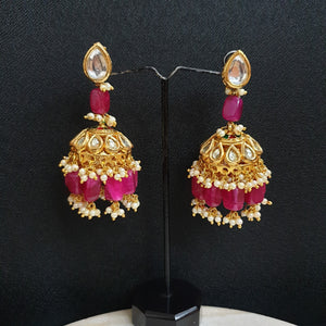 Pink Kundan Jhumka Earrings