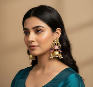 An elegant Kundan earring with the most stunning festoon. The perfect accessory for your occasion. These earrings are handcrafted with love