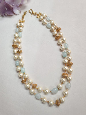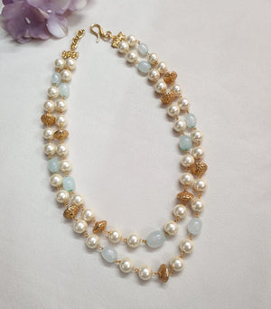 An elegant stone and pearl necklace with the most stunning festoon. The perfect accessory for your occasion. This necklace is handcrafted with love