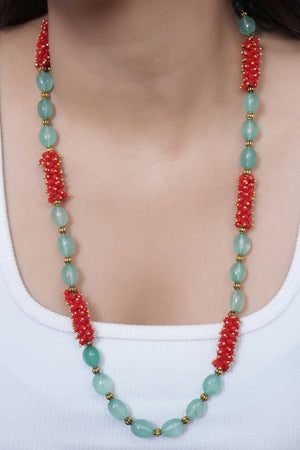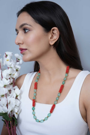 Green Red Stone Single Layered Long Mala