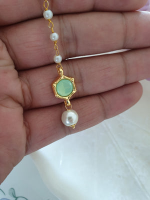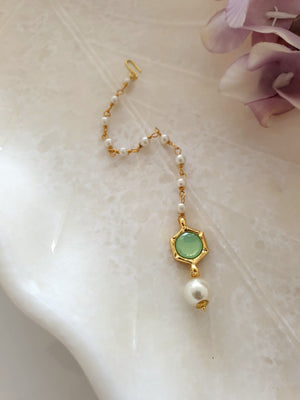 Pista Green Stone Meenakari Pearl Beaded Maang Tikka