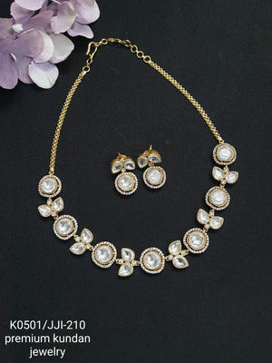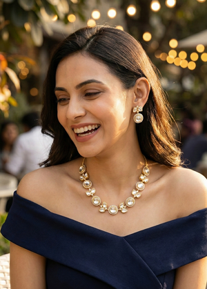 Elevate your style with this exquisite Designer Kundan polki Necklace set. Its intricate craftsmanship and regal charm make it the perfect statement piece