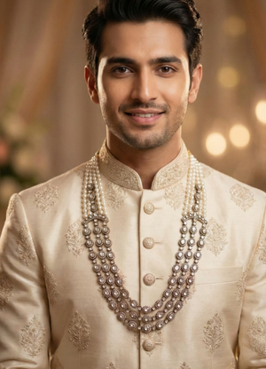 Premium Kundan Polki Pearl Beaded Groom Necklace