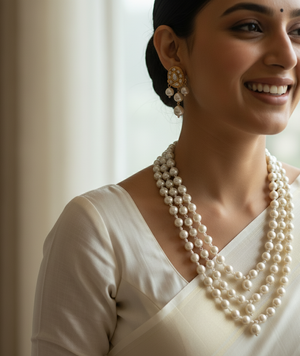 An elegant pearl beads stone necklace with the most stunning festoon. The perfect accessory for your occasion. This necklace is handcrafted with love