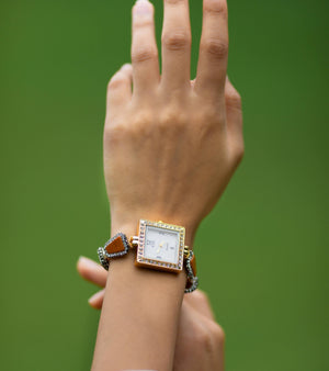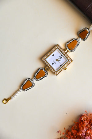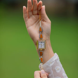 Material: 22k Gold Plated Silver Alloy, Jadau Beads, Quartz Watch
