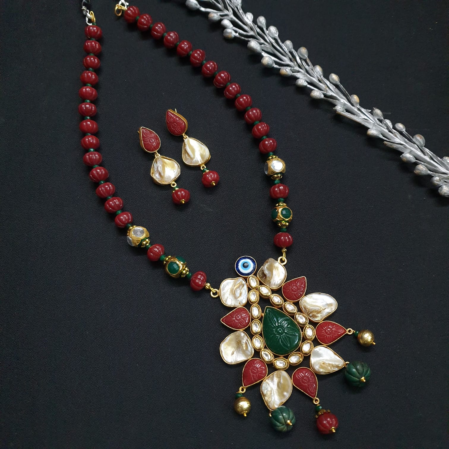 Pumpkin Beaded Unique Pendant Set With Earrings