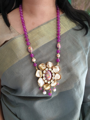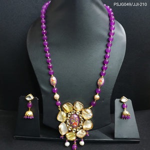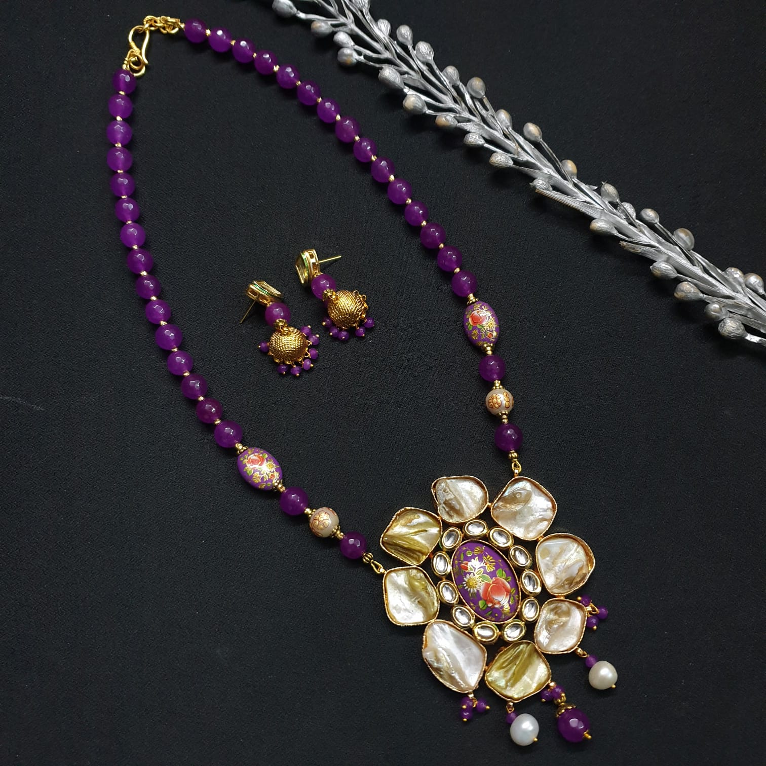 Elevate your style with our Purple Beaded Kundan Fusion Set, gracefully paired with coordinating earrings. This exquisite set seamlessly blends traditional craftsmanship and modern design, adding timeless elegance