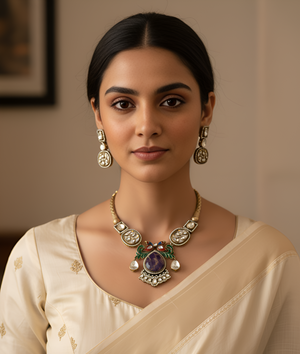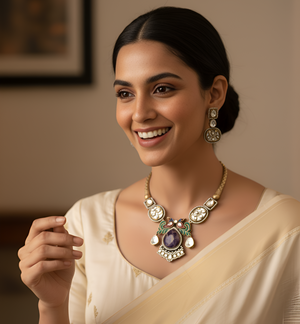 Elevate your style with this exquisite Designer Necklace. Its intricate craftsmanship and regal charm make it the perfect statement piece