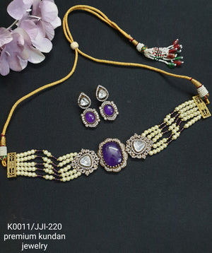 Elevate your style with this exquisite Designer Kundan polki Necklace set. Its intricate craftsmanship and regal charm make it the perfect statement piece