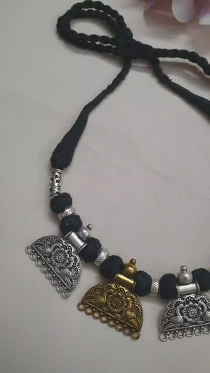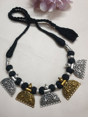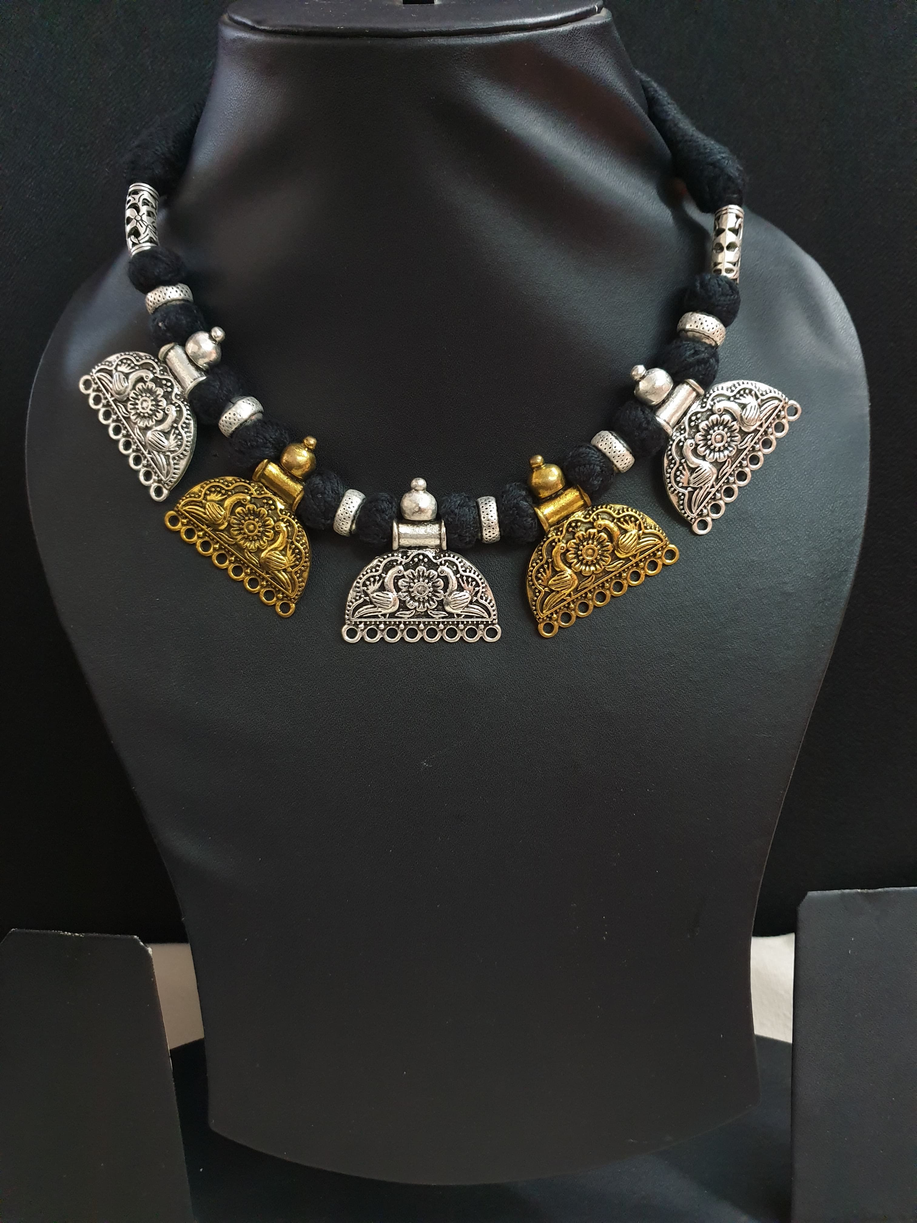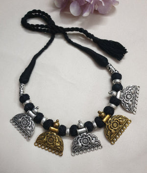 Dual Tone Black Thread Oxidised Silver Necklace Set