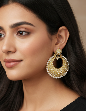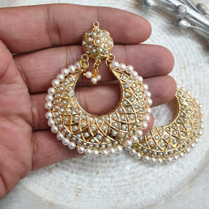 Real Pearl Jadau Chandbali Earrings