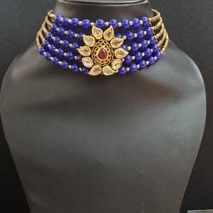 An elegant blue beaded choker necklace with the most stunning festoon. The perfect accessory for your occasion. This necklace is handcrafted with love