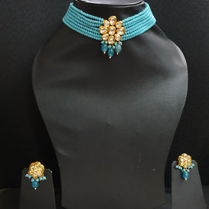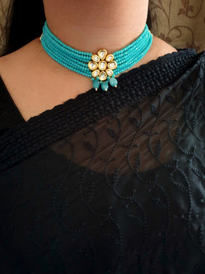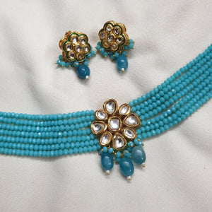 Turquoise Beaded Kundan Choker Necklace With Earrings