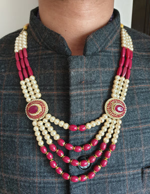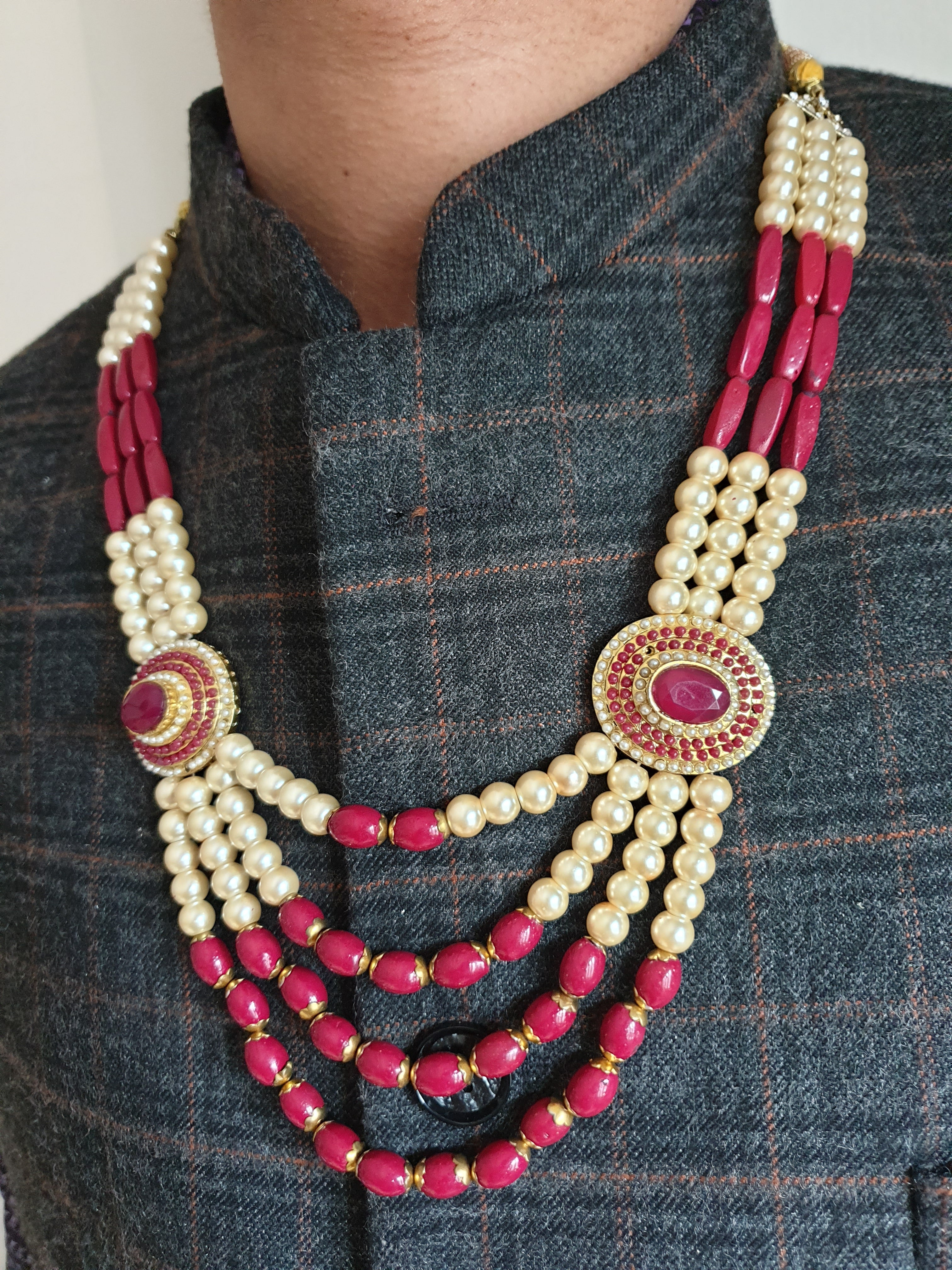 Styling: These are the perfect accessories to accentuate the elegance of your traditional outfit, furthermore, adding a perfect pop of color and edginess. The beautiful elements of the necklace go well with the sherwani or narrow jacket. A statement groom necklace is enough to turn the entire outfit look amazing. It looks better with a solid color outfit or pastel outfit.