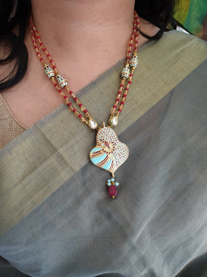 An elegant red beads stone meenakari pendant with the most stunning festoon. The perfect accessory for your occasion. This necklace is handcrafted with love